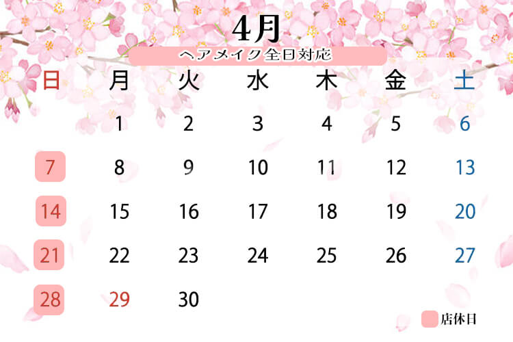4月は毎週日曜日を店休日とさせて頂きます。