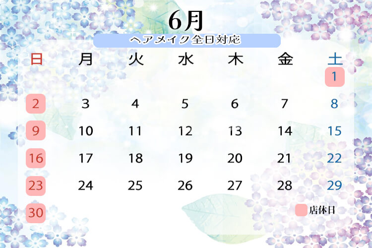 6月は、毎週日曜日を店休日とさせて頂きます。