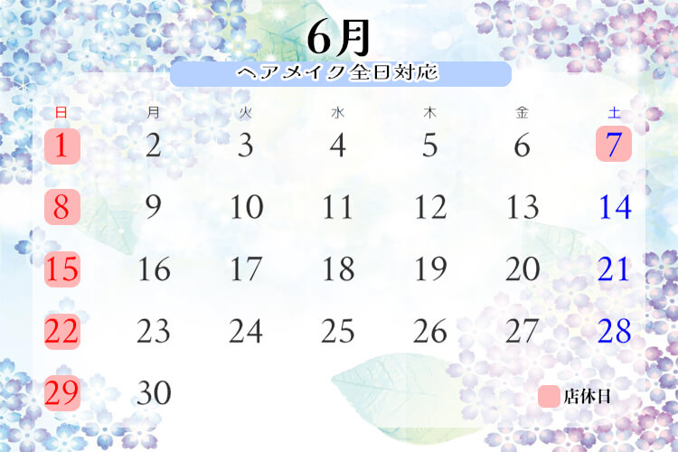 6月は、毎週日曜日と7日(土)を店休日とさせて頂きます。